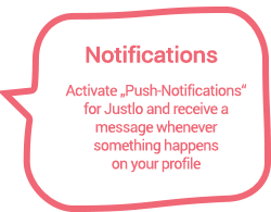 Life nowadays is taking place on the outside! Nobody should stay at home to get to know new people. Use Justlo wherever you want: in the supermarket, in public transport or while paying your grandma a visit. From now on you won’t miss any updates!